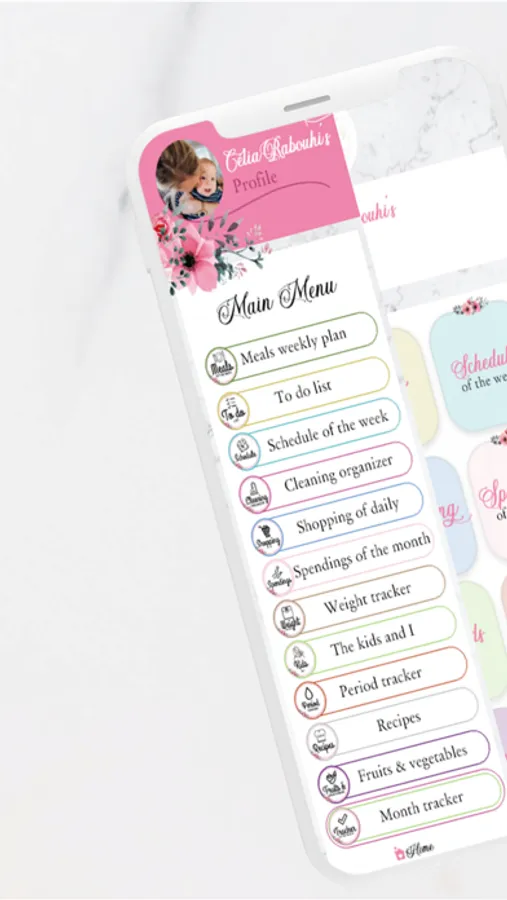 This application gathers a maximum of data allowing to follow the evolution of our life as women (menstrual tracking, weight tracking, home management, new goals...), but also to follow the evolution of our children! A 100% feminine and customizable application allowing us to be more organized, to find a perfect balance at home, but also to fully live our life as women.