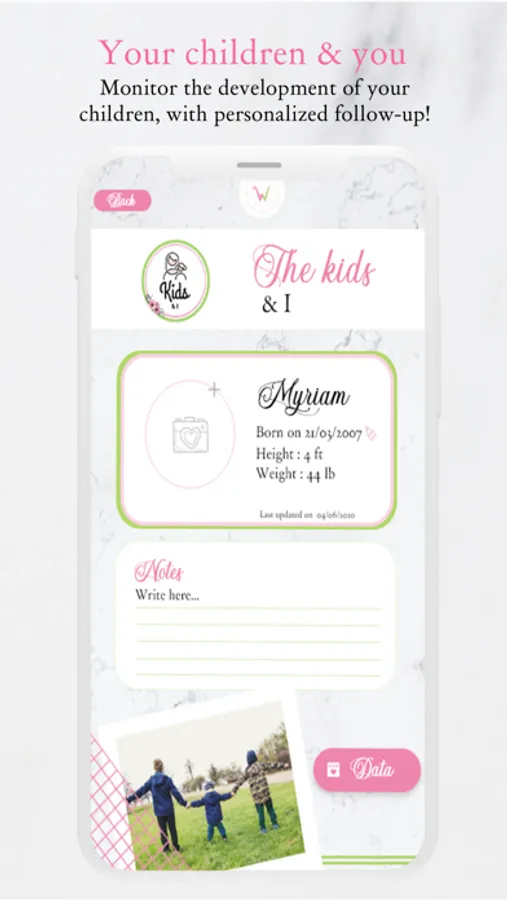 Features reserved for your little ones! You will be able to have a file for each child and follow their weight and height evolution. Personalize everyone's spaces with great photos!