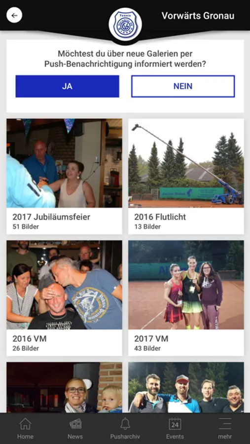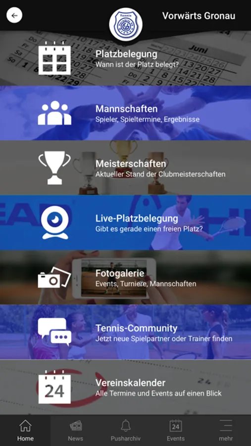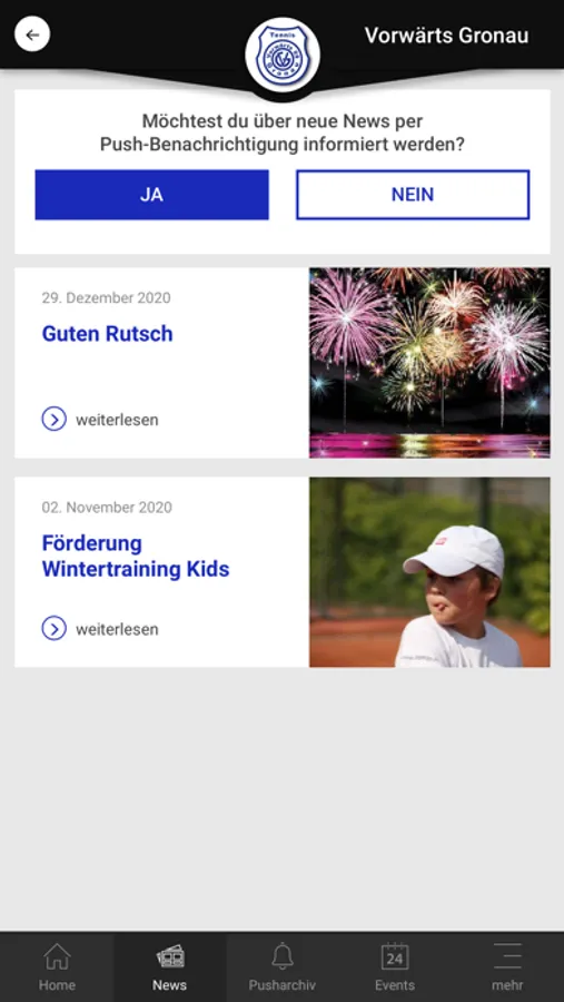 - Push-Benachrichtigungen zu aktuellen Ereignissen im Verein