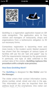 QwikReg is a registration application based on QR code recognition. The application aims to free visitors and managers of restaurants, shops and organizations from a bothersome obligation to fill out necessary forms.