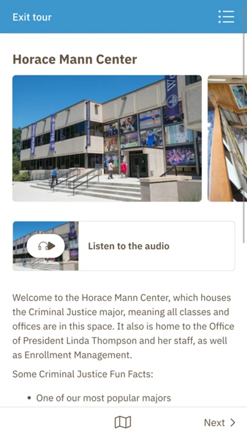 Westfield State University is one of the nine State Universities in Massachusetts. Located in Westfield, Massachusetts Westfield State is home to over 5,000 undergraduate and graduate students. Sitting on 256 acres of land, there are plenty of modern and historic locations on our campus for you to explore. Come visit Westfield State and have a student lead tour through the campus all while using this app. Each site on campus is narrated by one of our WSU Tour Guides so you will be hearing from our students and experience a full tour of our campus at your convenience.