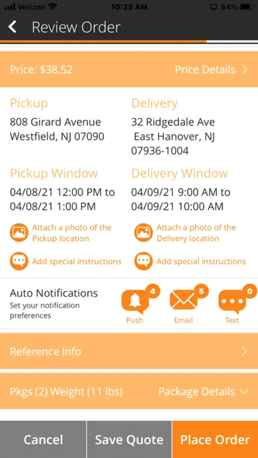 Order entry has never been easier. Add your packages, find addresses based on your GPS location, review your cost and pay right from the app. Place orders in seconds, or drill into more details like scanning barcodes to add packages, attaching photos to stops, and setting up your notifications.