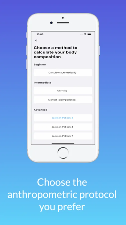 - Track body fat percentage by simply recording body weight or using anthropometric protocols such as Jackson Pollock, Us Navy to accurately calculate body composition.