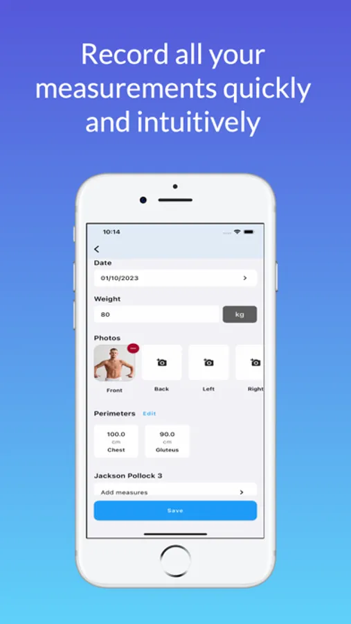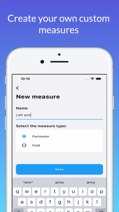 - Measure and track all body circumference measurements and even create body measurements of perimeters or folds in case they do not exist in the application.