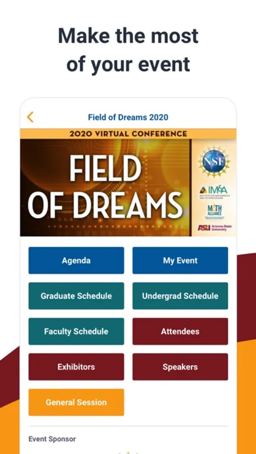Download our app to join the Math Alliance community at this year's virtual conference. Registered Attendees can access agendas, network with other attendees, and watch live presentations. The Field of Dreams Conference introduces potential graduate students to graduate programs in the mathematical sciences at Alliance schools as well as professional opportunities in these fields. We can't wait to see you there!