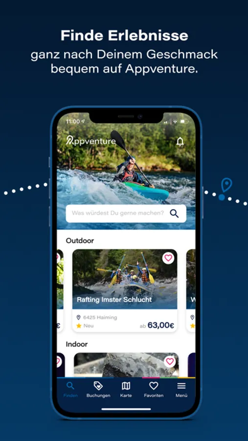 Mit Appventure ist Dein nächstes Erlebnis nur noch einen Klick entfernt. Du kannst Dir unsere Freizeit-App kostenlos herunterladen und direkt ins nächste Erlebnis starten. Wir haben für Dich zahlreiche Aktivitäten gesammelt und auf Appventure vereint. Egal, ob Du ein actionreiches Abenteuer suchst oder einen entspannten Ausflug mit Freunden unternehmen willst - wir haben garantiert die passende Freizeitaktivität für Dich, Deine Freunde oder Deine Familie.