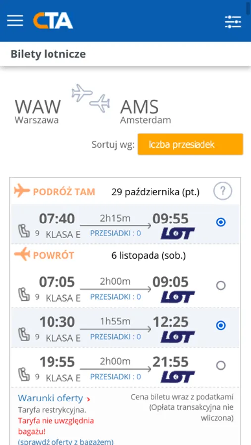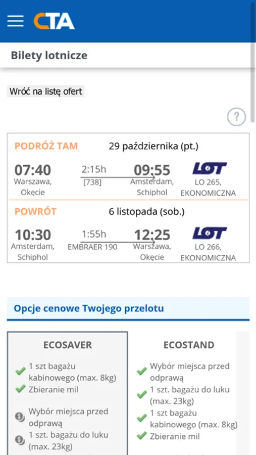 - atrakcyjnych warunków anulacji, dostępnych wyłącznie dla użytkowników CTA