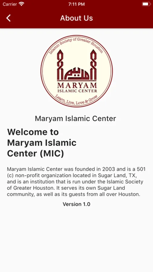 Maryam Islamic Center was founded in 2003 and is a 501 (c) non-profit organization located in Sugar Land, TX, and is an institution that is run under the Islamic Society of Greater Houston. It serves its own Sugar Land community, as well as its guests from all over Houston.