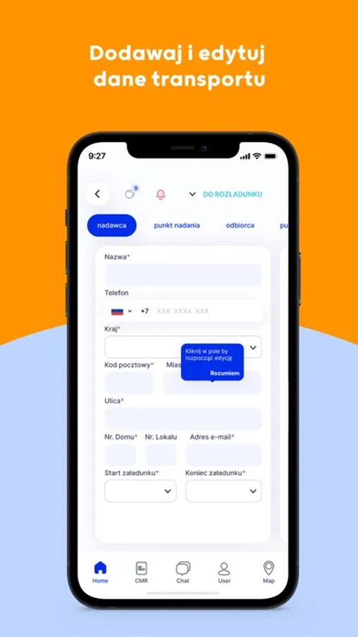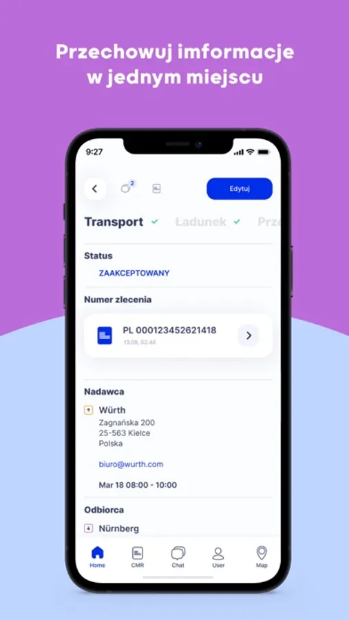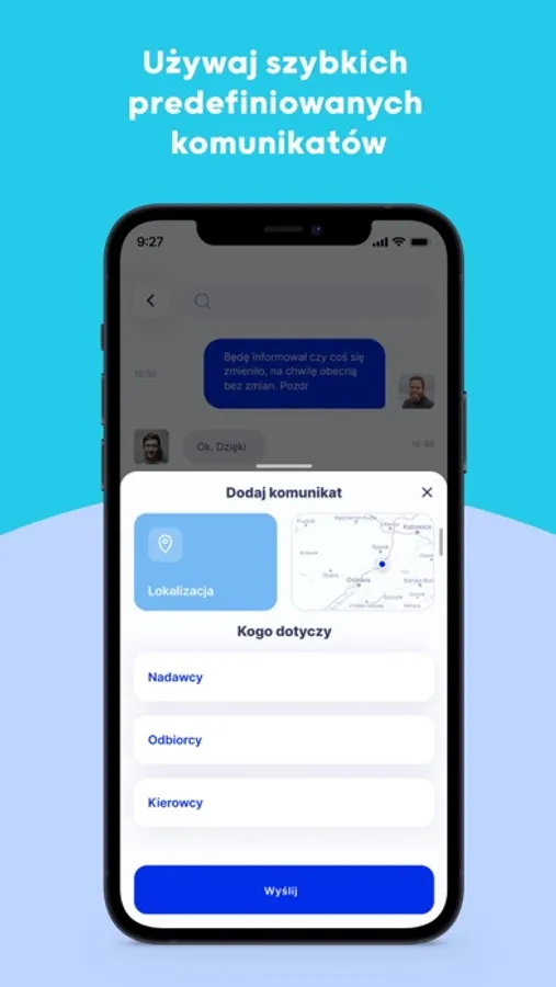 - komunikatora transportowego dla całego łańcucha dostaw, posiadającego predefiniowane wiadomości w wielu językach,