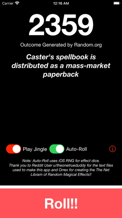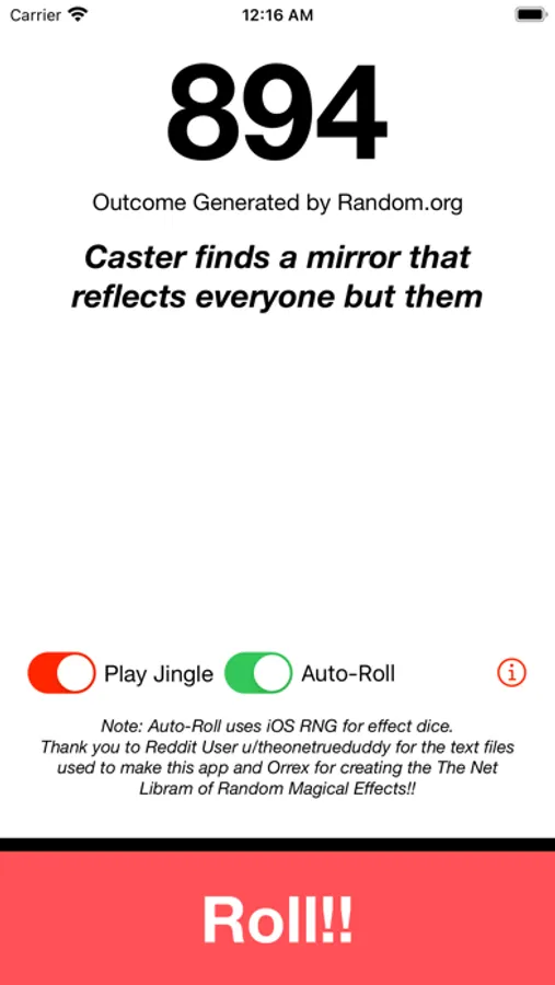 -Uses rolls from Random.org to get the outcome for the most random randomness