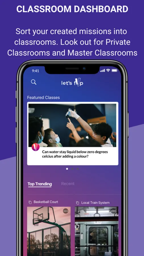 Your Mission HQ; where all the action happens! View all top trending and most recent missions here. It is perfect for an audience with phone and technology awareness. With minimum icons available on the mission dashboard, it is appealing and easy to navigate. To view the next mission, users can swipe down easily. When the need comes to search for a mission, classroom or friends, users can easily find the search button at the top left corner. We want users to be positively impacted, by wanting to return to Let’s Fl!p.