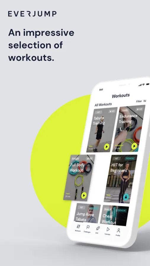 Our connected fitness system combines smart rope handles with our “Everjump – Jump Rope Workouts” app to create a holistic and cutting-edge training experience. With our weighted ropes, people can burn fat, build muscle, and improve coordination in the most fun and efficient way. In addition, rope jumping burns more calories per hour than running, biking, or swimming. Thus, it has never been easier to reach your personal fitness goals and get in the best shape of your life no matter where you are and who you are.
