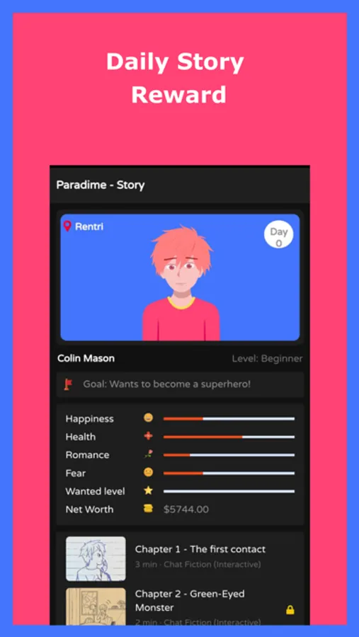 We have gamified the rewarding process by sending one chapter each day from the story “The Paradime”. Based on whether you completed your habit, the ending of the story will change. Stories are told in different formats such as chat fiction, comics, and visual novel as a metaphor for the transformation of our personality.