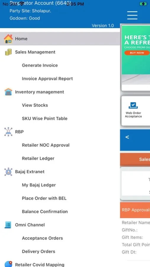 This app is used by the distributors to manage orders, generate invoice, place order with BEL, view their available stocks, do retailer NOC approvals etc.