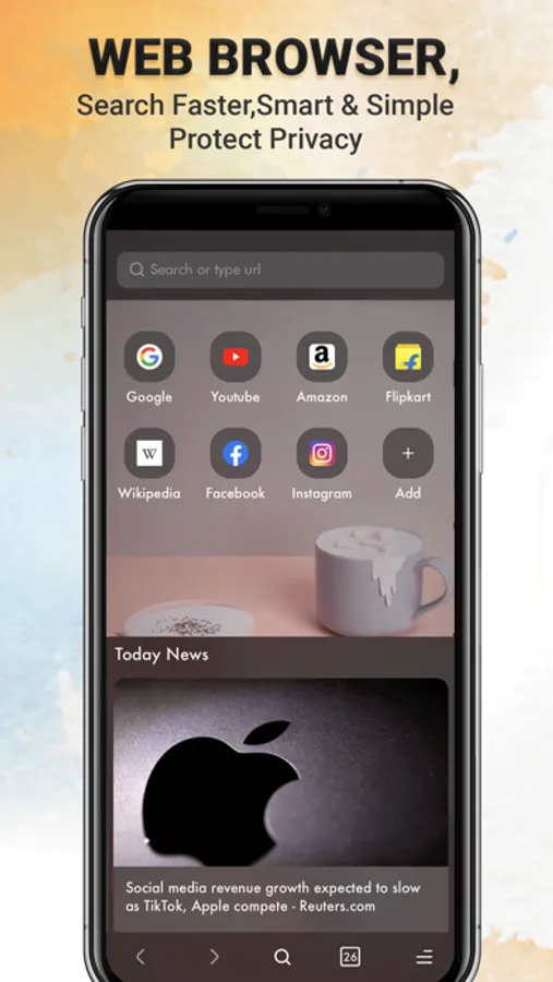 Browser Pro Fast & Secure is not just fast for Search, but designed so that you're one tap away from all your favourite content. You can tap on your favourite news sites or social media directly from the new tab page. U Browser Mini also has the 'tap to search' feature on most web pages. You can tap on any word or phrase to start a Search u have selected engine while still in the page that you're enjoying.