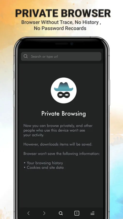 - Browse privately: Use private tabs to go incognito anywhere on the internet without leaving a trace on your device.