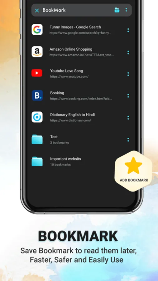 Save your favourite web pages in Bookmarks and visit them later on your choice.