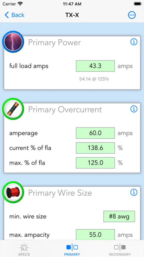 - Calculate any motor load and get maximum overcurrent, maximum overload, minimum wire, minimum pipe, and minimum bond wire size.