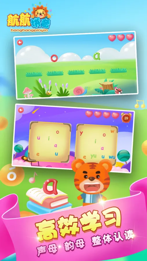 5. 拼音游戏:多种拼音游戏,包括打地鼠学拼音、连一连学拼音、翻翻乐学拼音等拼音游戏。