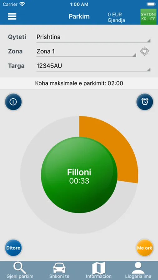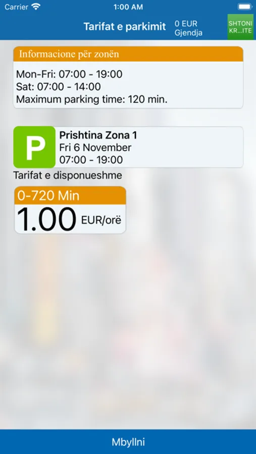 "Aplikacioni EasyPark Mobile Prishtina, ju mundëson të gjeni lehtësisht vendet e parkimit për të parkuar makinën tuaj shpejt dhe lehtësisht. Të kontrolloni kohën e parkimit duke përdorur opsionet smart të menusë,dhe të lokalizoni vendodhjen e makinës suaj nëpërmjet shërbimit të vendndodhjes po ashtu. Për të përfituar nga këto dhe shumë sherbime të tjera Ju duhet të shkarkoni aplikacionin në telefonin tuaj smart dhe të regjistroheni në këtë aplikacion duke ndjekur hapat që sugjerohen në aplikacion pasi ta keni shkarkuar atë. Rregjistrimi në këtë aplikacion ju ofron mundësinë të përfitoni shërbimet që ky aplikacion ofron: Pagesën për minutë, pra ju do të paguani për aq kohë sa do të qendroni në parkim, kërkimi i destinacioneve dhe vendet e parkimit falas; fillimi, ndalimi dhe rregullimi i kohës së parkimit; pagesa parkimi me një klikim duke përdorur një kartë krediti ose debiti; gjetja e vendndodhjes ku keni lënë makinën tuaj dhe; shumë shërbime të tjera.