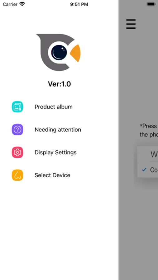 该app通过无线wifi与黑头仪、掏耳勺、牙视仪等设备连接,可以在移动设备上显示微距镜头的实时画面。在预览实时画面的时候,可以拍照,录像保存当当前的照片和视频,可以对画面进行镜像翻转。