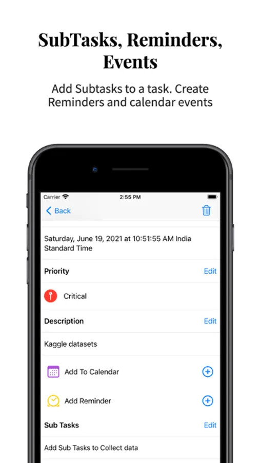 Remainders and Calendar Events can be created for the tasks easily with “Project Tracker”
