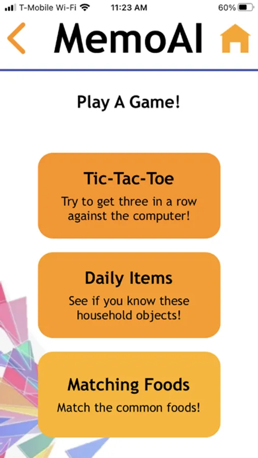 In this section, MemoAI has created three personalized games meant to challenge individuals with dementia in a playful and entertaining manner. By quizzing you on daily items and playing games like tic-tac-toe, MemoAI strengthens your mental memory. Try and beat your latest score!