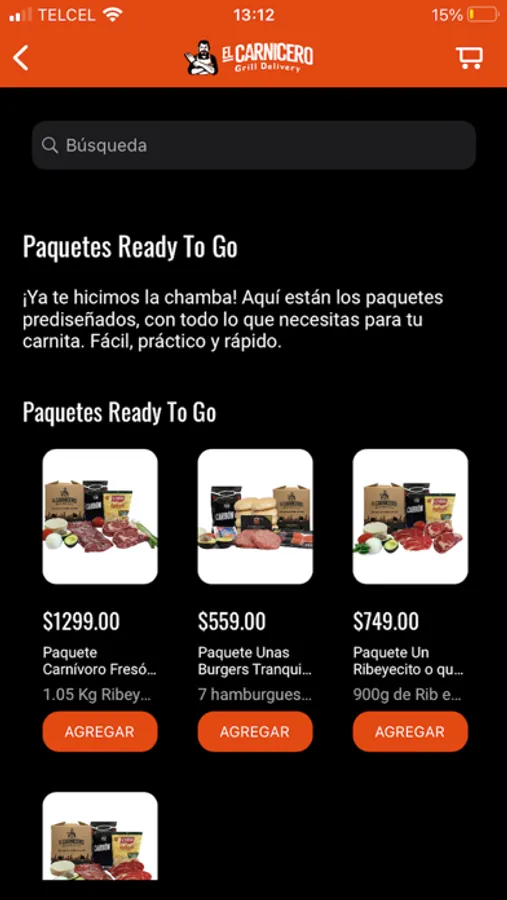 Encuentra en nuestra aplicación la mejor selección de cortes nacionales, cortes importados premium, acompañamientos desde chorizos, hasta camarones o hamburguesas, complementos como verduras, tortillas, salsas y carbón, entre muchos otros productos. Todo a un click de distancia y en un solo lugar.