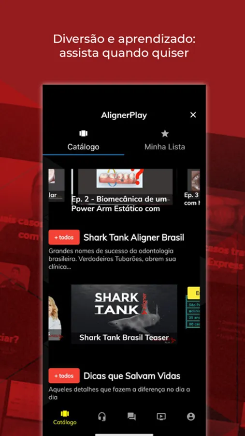Além disso, você vai poder aprofundar seu conhecimento com nosso conteúdo On Demand. São cursos intensivos para uma verdadeira imersão em alinhadores.