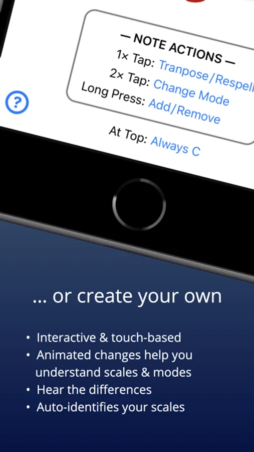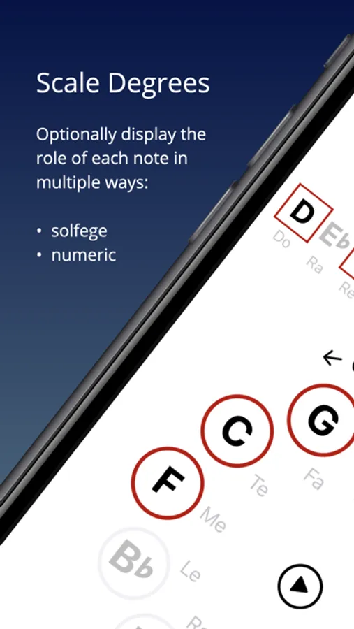 ScaleMate is perfect for projecting on a screen or sharing over zoom while you teach. Its animations let you show how one scale transforms into another, and it has special features (pointing, hiding/revealing) for educators.