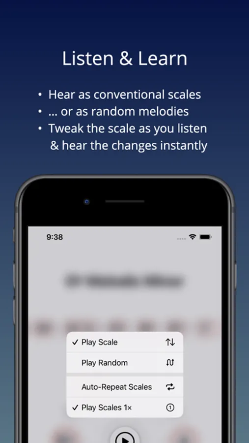 ScaleMate lets you hear what scales sound like, by playing them up & down, or by playing endless melodies that use them.