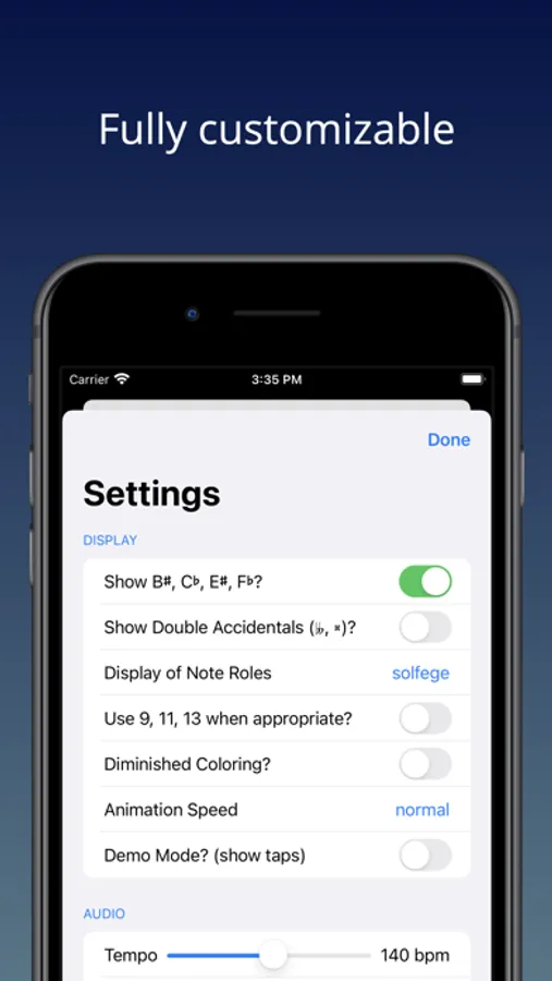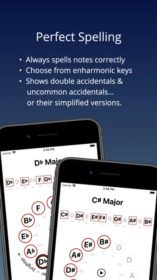 ScaleMate shows you double flats and double sharps whenever they're called for… unless you'd rather see simplified note names. Prefer never to see notes like Cb and E# either? You can have ScaleMate show them as B and F.