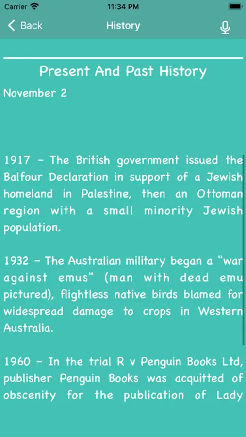 User have a option to switch between the dates to check what happened in that particular day in history.