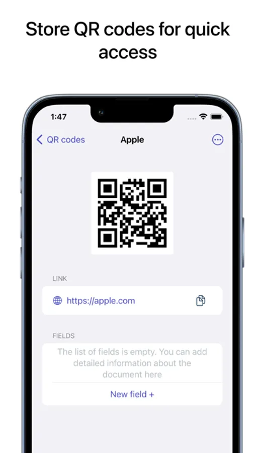 Save qr codes for quick access. Here you can also create fields to quickly copy important information. For example, you can store ticket information, qr and any other information available as qr.