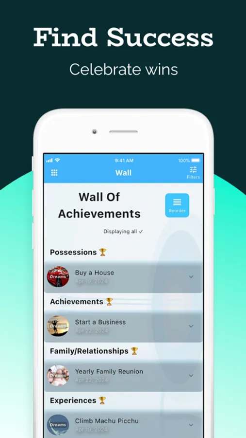 - Celebrate even the smallest wins and watch your Wall of Achievements grow