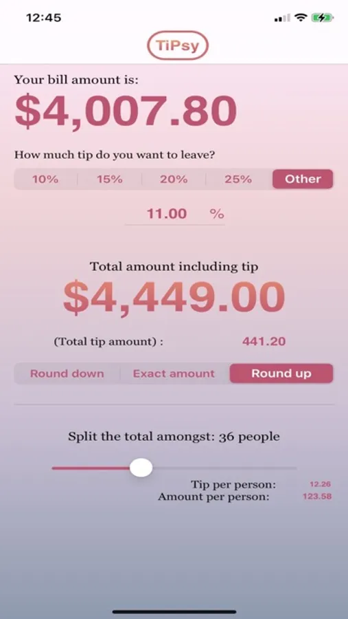 Tipsie Calc is a free tip calculator that is also completely ad-free. You can simply enter the bill amount and select the tip percentage to get the total amount to be paid after tip. You can also do things like splitting the amount amongst up to 100 people, round up or round down the final amount, and enter custom tip percentage amount. The app has no distractions and simply does what it is meant to do. The app shows information like the tip amount you are paying, the amount and tip per person to be paid and much more.