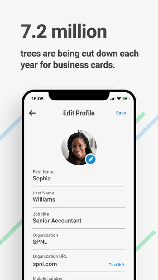 Our major purpose is to replace all those paper or plastic business cards and save trees.