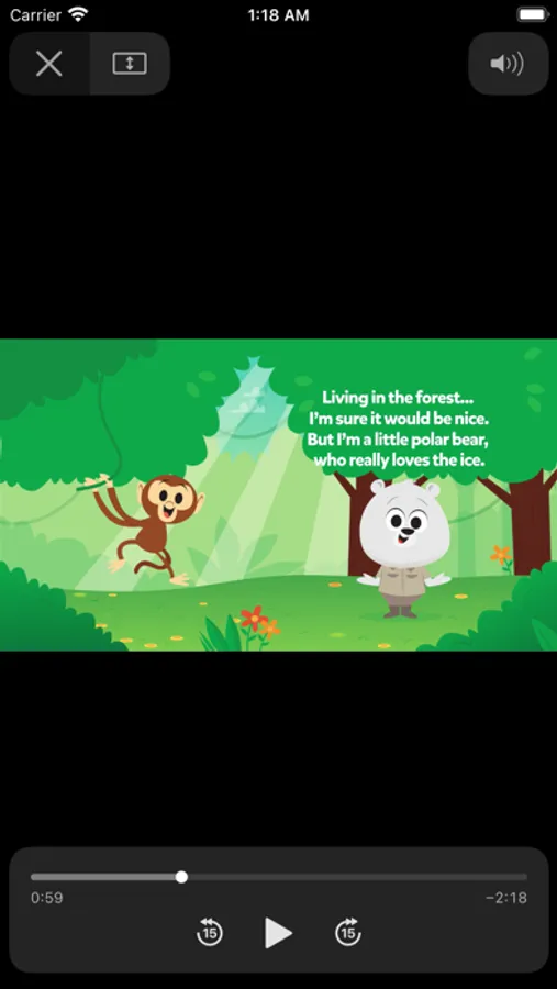 2) A flip book for reading. Simply swipe to move between the pages. Tap on select images of the animals in the story to hear the sounds they make!