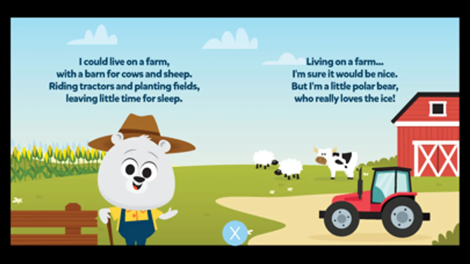 Poog is a friendly and curious little polar bear who is eager to explore the world around him and learn new things! This app is offered as a companion to the children’s board book, “Poog The Polar Bear In: Where Do I Live?” It contains the same content as the book itself (described below), but offers this content in two new forms: