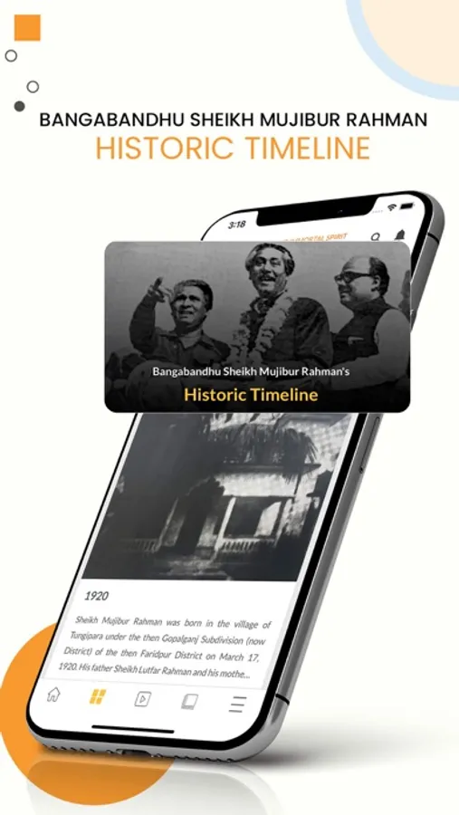 The key feature of the app is the dynamic news feed that gathers all the contents and information at a glance. Watch Bangabandhu’s rare images, videos, speeches and so on. Other features of Mujib 100 App are:
