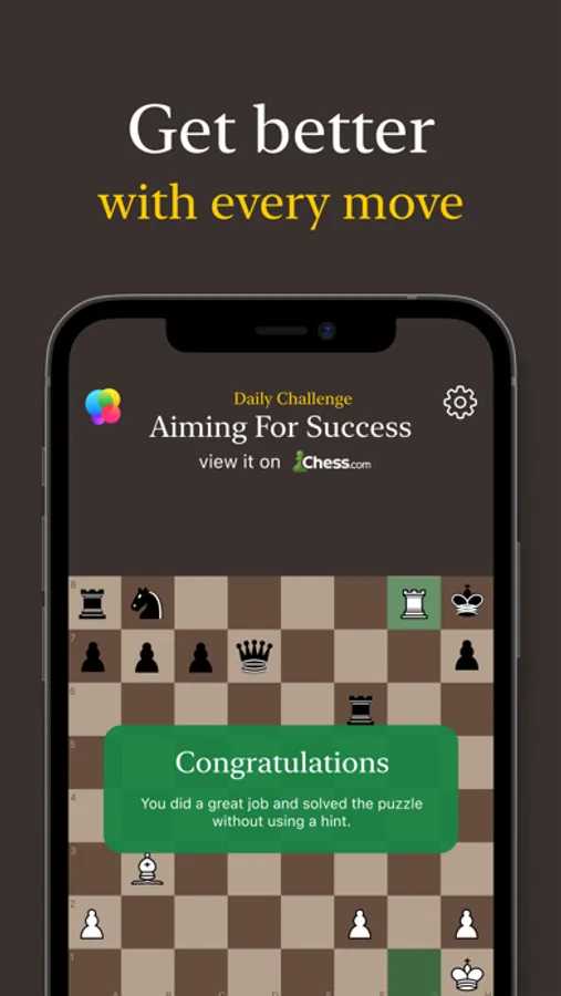This app lets you solve thousands of chess puzzles and learn from them. Everyday a special "Daily Challenge" will wait for you. The puzzles are provided by one of the leading chess platforms.