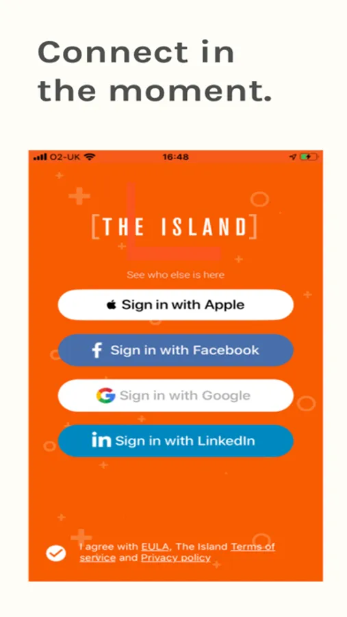 The Island is a location-based community app designed to facilitate social connections in the real world. Available for use only in pre-defined real-world locations - we call them "islands" - the app helps users socialize with like-minded people, who are in the same "island", at the same time.