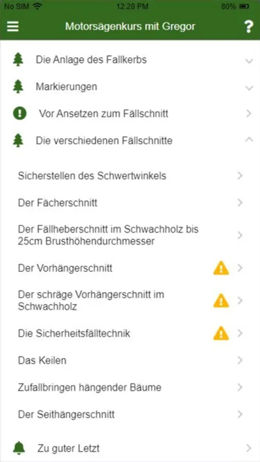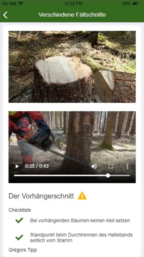 In dieser App möchte ich mit kurzen Videos und Bildern für jeden Anwender einer Motorsäge einfach darstellen, wie man die Motorsäge handhabt und damit einen Baum fällt.
