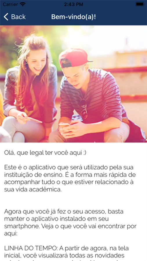Este é o aplicativo que será utilizado pela sua instituição de ensino. É a forma mais rápida de acompanhar tudo o que estiver relacionado à sua vida acadêmica. Veja o que você vai encontrar por aqui: