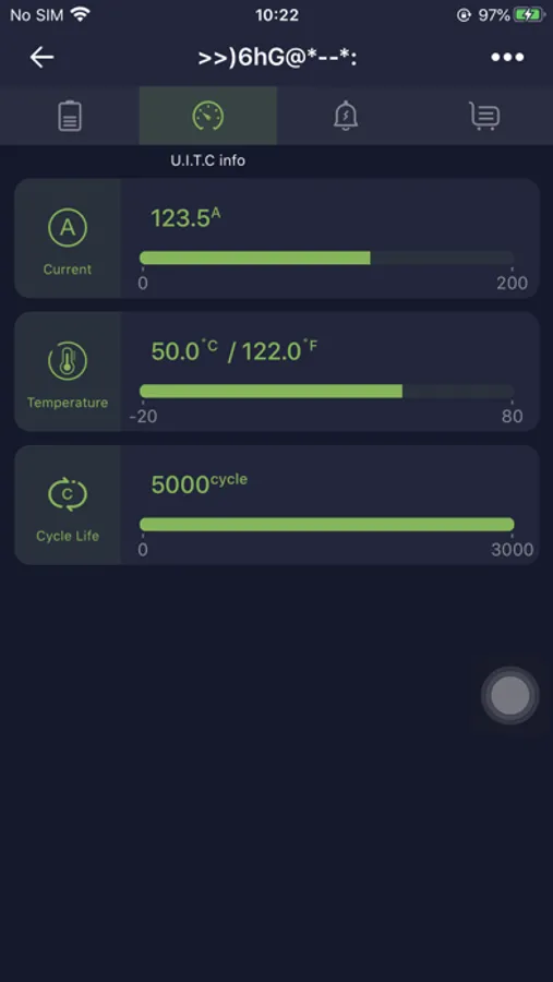 * Displays State Of Charge (SOC) percentage with circle graphic.