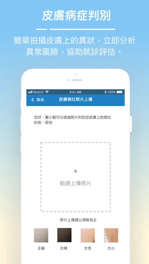 By simply photo shooting and uploading your abnormal skin lesion, AIDoc. can