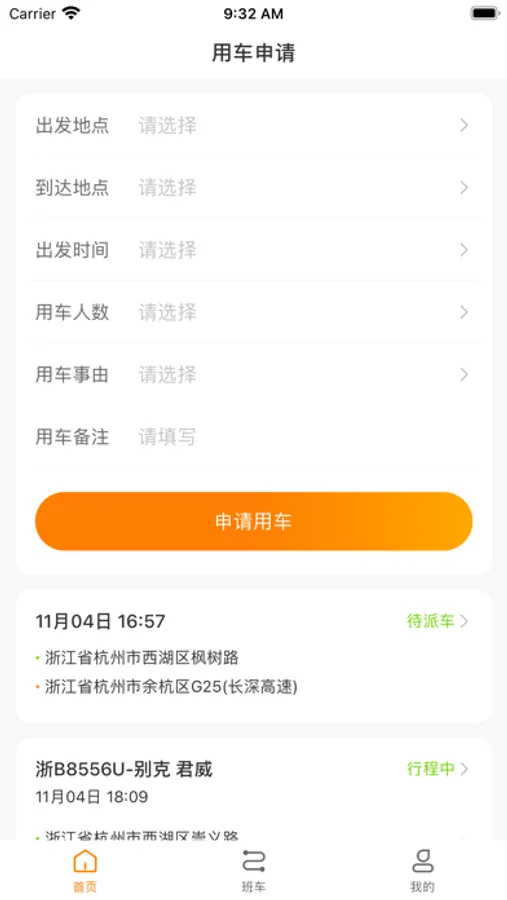 【用车随时申请】用车端一键申请,领导移动审核,后台智能派车,申请、审核、派车全流程管理;
