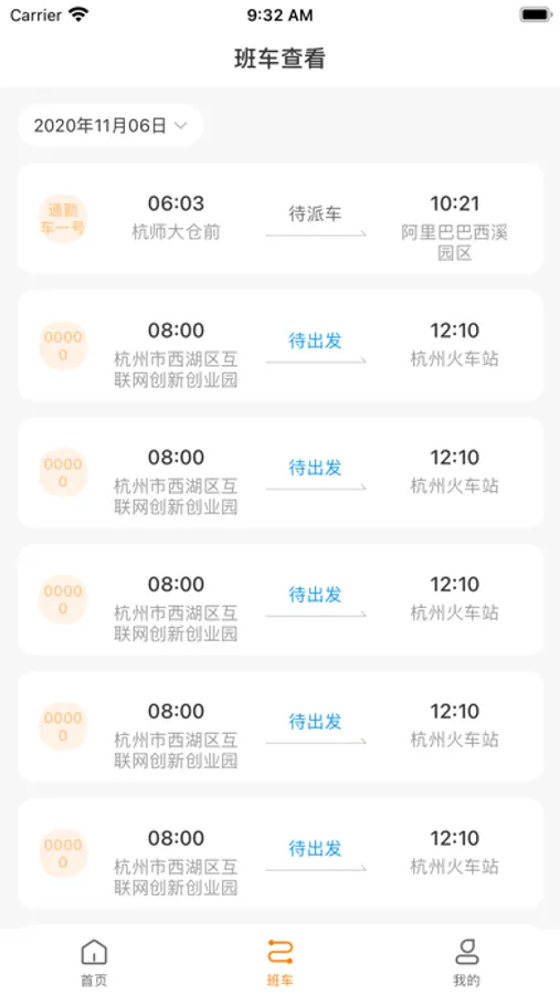 【班车高效管理】路线、固定班车统一统一管理,用户端支持班车位置及时刻表查询,时刻掌握班车详情;