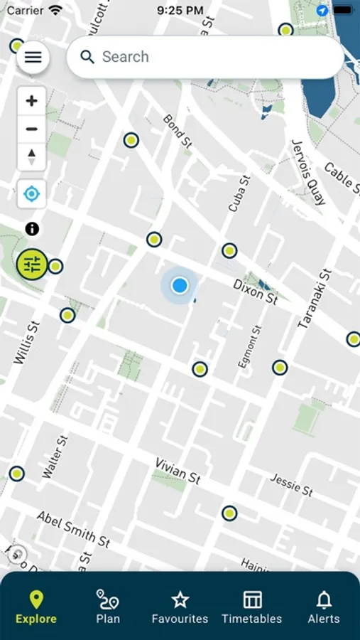 - The map view shows all stops, with quick access to their real time information and facilities.