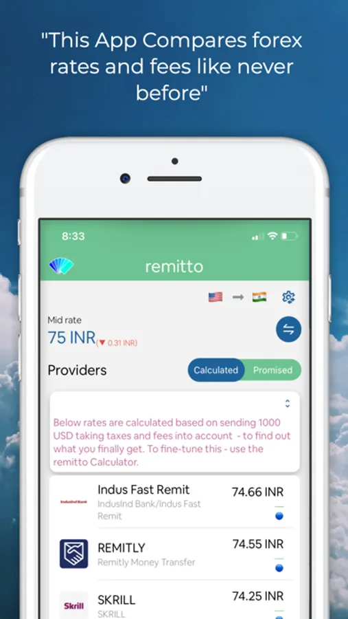 Remitto app provides in-depth detail and comparison of forex rates and fees. Forex companies and banks often make money by either marking down exchange rates from actual mid-market rates or by attaching additional fees to the transaction.